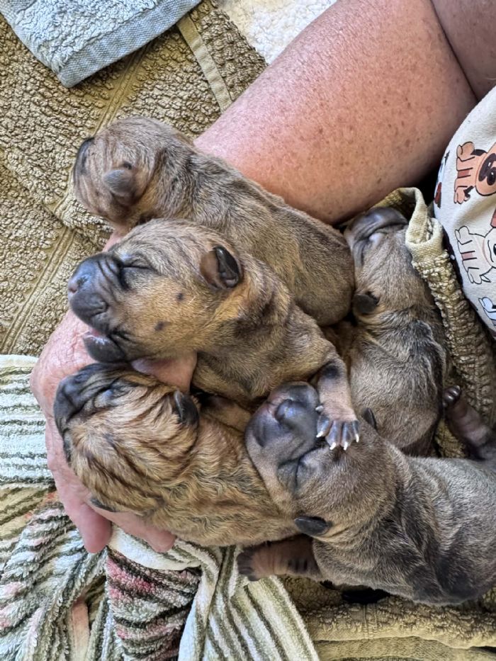 We are excited to welcome the first of our two planned 2026 Pei litters!! 3 healthy girls and 2 fatso boys. All puppies and mum Roxy are doing well.
